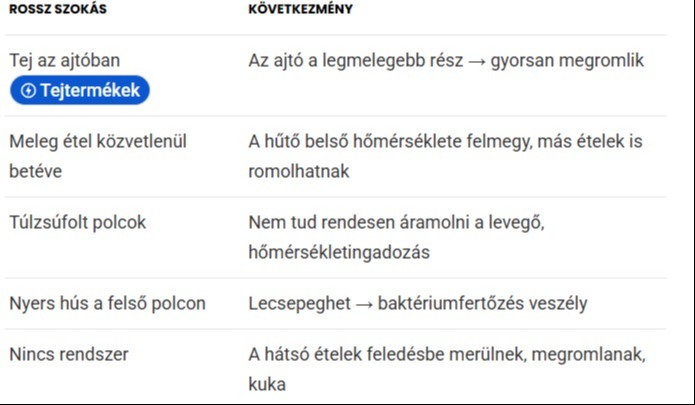 -Felső polc: maradék, italok, gyorsan fogyó élelmiszerek